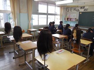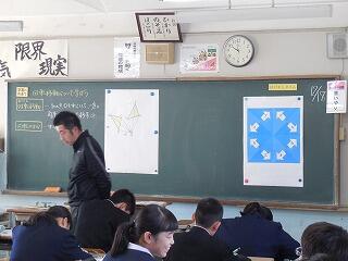 本日は今年度5回目の土曜授業の日です。午前中3時間授業がありますが、生徒の皆さんは元気に授業を受けています。インフルエンザの流行がまだまだ心配です。明日は家庭の日ですので、大会等以外の部活動は休みとなっています。生徒の皆さんには、人混みを避けて、ゆっくりと過ごして欲しいと思います。インフルエンザにはマスク(サージカルマスクが良いそうです)の着用が有効だそうです。予防的なマスク着用もお願いしたいと思います。ところで、1年生の美術の時間に、延岡花物語で使用するかざぐるまを作成していました。本校は300個を作成することになっています。