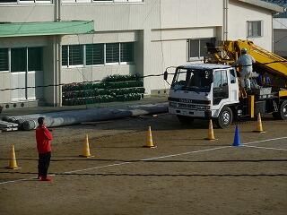 今日は、朝から6600ボルトの高圧電線から校内に設置されているキューピクルに電気を繋ぐ工事が行われています。本校の空調整備工事も最終段階となっています。