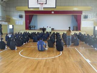 本日5時間目に、年間計画に従い性に関する指導を行いました。3年生は武道場で学年全体で、1年生は各学級での行いました。内容は3年生が、性感染症への正しい認識、1年生が思春期の体と心の変化でした。中学生の頃は心身の発達が著しく、また、そのバランスが崩れてしまう時期でもあります。正しい知識を身につけこの時期を前向きに過ごして欲しいと思います。