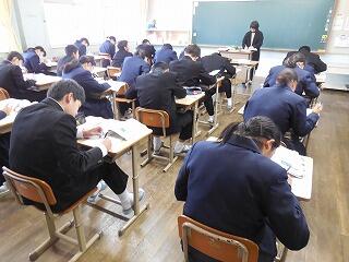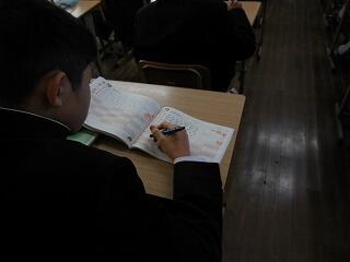 本日は昨日に引き続き1年生は観点別到達度検査社会・数学(CRT)、2年生は実力テスト(社会と数学)に臨んでいます。午後は、総合的な学習の時間で、1年生は進路のテーマ学習、2年生は立志の集いの準備、3年生は進路学習となっています。今日も充実した1日になることを期待したいと思います。