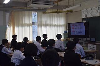 (下、5校時の2年生修学旅行事前指導の様子です)