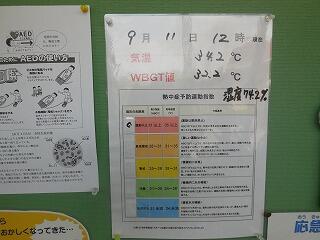 本日正午時点で、気温34.2度、湿度74.2%、WBGT値32.2(31以上は運動禁止)でした。そのため給食時間に注意喚起の放送を養護教諭が行いました。まだまだ暑い日が続きます。また、市内でインフルエンザ流行の兆しもあるそうです。健康管理及び体調管理には、十分気を付けてほしいと思います。※本日の部活動は、安全確保のため待機またはミーティング等に切り替えています。