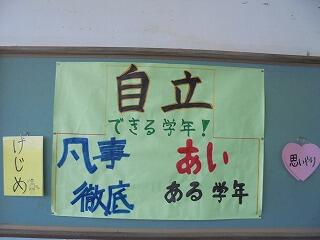 一年生の学年目標です。学年全体で達成できるようにがんばっています。