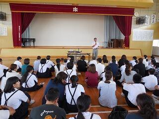 生徒の皆さんには、35日間の夏休みを安全にそして有意義に過ごして欲しいと思います。また、1学期で本校を離れる事務室の桐田さん、学校支援員の中田さん、母国アメリカに戻るジョセフベンベラ先生、本当にありがとうございました。