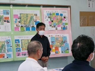 中学校2年生(97名)と地域の方々が一緒に地域を歩いて調べた「防災・減災マップ」が完成し、地域の方々代表に贈呈しました。作成したのは7種類です(校区内7公民館に掲示予定)。地域調査は、昨年の10月に実施しました。実施後には、調査結果を模造紙にまとめ、パソコン上で整理したものを印刷して仕上げました。あくまでも今回のマップは昨年の10月時点に生徒目線での結果です。今後は、各公民館毎に、地域の方々が大人目線でマップに書き込んでバージョンアップしていただけるとさらに利用しやすいマップになると思います。