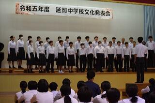 スタートは、合唱コンクールです。学年が上がる毎にレベルも上がっていきました。3年生は、後輩のよき見本となるすばらしい合唱。1・2年生に「あんな合唱を来年は自分達もしてみたい!!」と思わせる内容でした。英語暗唱・弁論は、堂々とした立派な発表でした。総合的な学習の時間の発表は、各学年とも工夫されたものになっていました。吹奏楽部演奏は、楽しい、リズミカルな演奏で、聞く人も心おどる演奏。延岡中の文化活動の成果を十分発揮できた1日になりました。