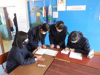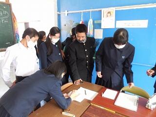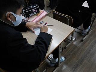 本日は木曜校時の6時間授業です。2・3年生は5時間目に総合的な学習の時間です。6時間目は全学年教育相談を行います。また、本日は3年生の私立高校の入試2日目で、日章学園の試験があります。本校からは2名が受験します。力を発揮して欲しいと思います。