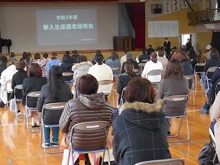 (下、午後の新入生説明会の様子、方財小学校6年生の皆さんに生徒会執行部の皆さんが説明を行いました)