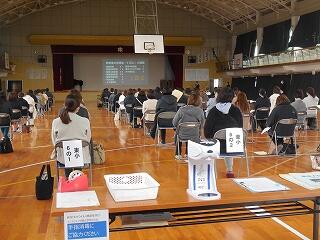 本日は遠足で、生徒会行事を体育館で行います。天候や会場(方財海浜公園)の状況がよければ、計画通り遠足を行いますが、校内で過ごすことも検討しています。