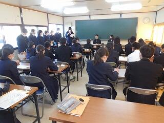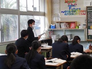 本日は火曜校時で6時間授業です。ALTのチャック・シオン先生の来校日です。6時間目は、1・2年生は教育相談、3年生は私立高校入試事前指導が実施されます。いよいよ私立高校の入試が始まります。明日は聖心ウルスラ学園高校、延岡学園高校、宮崎日大高校の入試が市内各会場で実施されます。