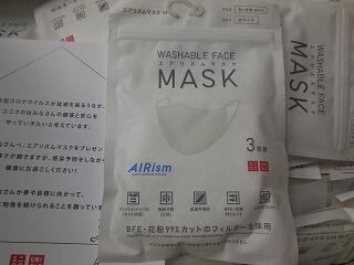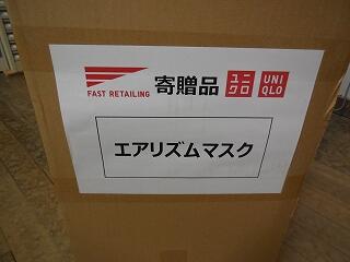 (下、届いたユニクロ製のマスク、全部で300袋(Mサイズ900個)届きました)