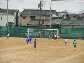 (下、1時間目の2年2組の保健体育サッカーの様子)