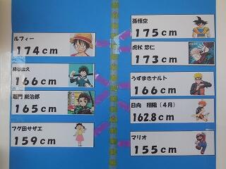 (下、保健室前の掲示物、身長を測ってみたくなる掲示です)