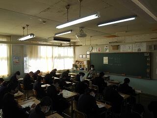 本日は月曜校時の6時間授業です。3年生は県立高校一般入試の1日目です。53名の3年生が受検に臨んでいます。力を出してほしいと願っています。