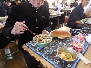 (下、今日の給食では、宮崎牛の肉うどんが出されています、大変おいしいです)