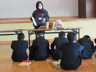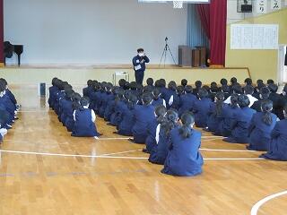 (下、昼休みに部活動生集会を行いました。学校生活、生活面、保健安全面についての指導を各先生方が行いました)