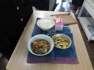 (下、本日の給食では、宮崎牛が入った里芋の煮物が出ました)