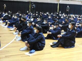 本日は火曜校時、6時間授業です。部活動について保護者の皆様にお知らせです。1月7日にお知らせした部活動の対外試合や交流等の自粛については、1月17日(日)までとしていましたが、県独自の非常事態宣言や県内外の感染状況を踏まえ、1月31日(日)まで延長されることになりました。当面は校内での活動となります。また、体調不良者及びご家族に体調不良者がいる場合も練習には参加できません。この取組は県北地区の市町村で統一して取り組まれています。ご了承ください。新型コロナウイルス感染症対策に御理解と御協力の程、よろしくお願いします。