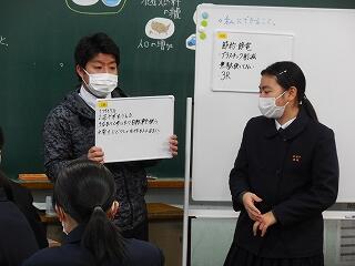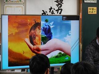 (下、1時間目の研究授業の様子、これまでの理科の授業を通して、地球環境について考え、これから自分がとるべき行動について考えさせる授業でした)