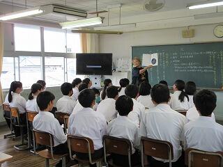 2年生で講師を招きキャリア教育講話を実施ししました。講師は、現在、延岡市でキャンプをしているラグビーチーム「静岡ブルーレヴズ」で、地域推進ユニットリーダーをされている正本さんです。