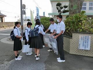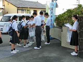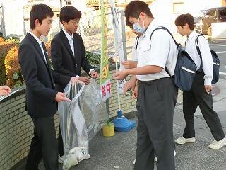今日は月に1度のクリーン・ウォークディ(生徒会行事)です。登校時に通学路のゴミ拾いを実施しました。多くの生徒が参加していました。