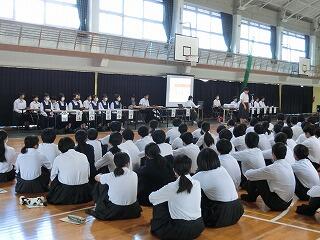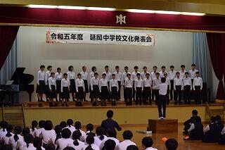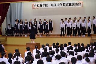 スタートは、合唱コンクールです。学年が上がる毎にレベルも上がっていきました。3年生は、後輩のよき見本となるすばらしい合唱。1・2年生に「あんな合唱を来年は自分達もしてみたい!!」と思わせる内容でした。英語暗唱・弁論は、堂々とした立派な発表でした。総合的な学習の時間の発表は、各学年とも工夫されたものになっていました。吹奏楽部演奏は、楽しい、リズミカルな演奏で、聞く人も心おどる演奏。延岡中の文化活動の成果を十分発揮できた1日になりました。