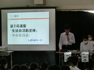 生徒総会が実施されました。新役員による運営でしたが、これからの延岡中をさらによくしたいという前向きな意見や対策が出されていました。