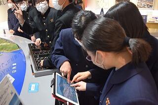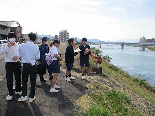 本校では、総合的な学習の時間に「地域の担い手として防災・減災について真剣に探究する生徒の育成」も目標に、各学年さまざまな取り組みを実施しています。第2学年は、地域の方々と自分の住んでいる地域を「防災マップ」を元に巡り、津波避難時に危険な箇所等について調べました。
