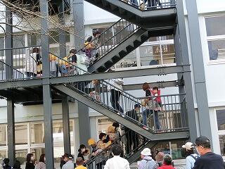 下の写真は、校内に設置された、「地震開錠ボックス」の説明をしている写真です。いざ避難するときに、避難場所に立ち入るためのカギの使い方を説明しました。11月5日の日には、延岡市危機管理課の方について詳しく説明してもらいます。