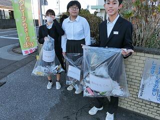 毎月1回実施している生徒会行事のクリーン・ウォークデーが実施されました。この活動は、8年前の先輩方から始まった活動で、登校中に通学路のゴミ拾いをする活動です。今日も寒い中、交通安全に注意しながら多くのゴミが集まりました。