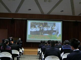また、講師の方のニュージーランド留学などの様々な経験から、現在の仕事に就くまでの過程を話していただき、仕事選びをするために「さまざまなことに興味をもつこと」「何にでもおもいきって挑戦すること」などが大切であるという話をされました。生徒自身も将来のことについて考える大変よい機会になりました。