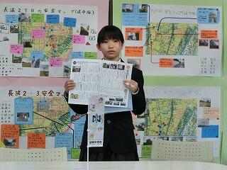 1年かかけて取り組んだ防災・減災調査の結果をまとめた冊子「地域防災・減災BOOK」を学校運営協議会の委員でもある区長さんに代表で受け取っていただきました。全部で350部印刷しましたが、そのうち230部を各地区の回覧板をとおして全地域の方々にも見ていただきます。生徒会を中心に編集した冊子を是非見てください。
