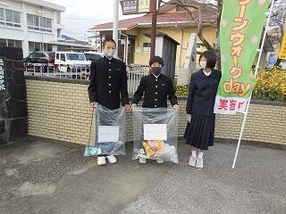 本日は5時間授業で、水曜校時の時間割です。1~3時間目に、2年は初めて、3年生は最後の実力テストとなります。力を出し切って欲しいと思います。本日朝の登校時に、生徒会主催のクリーンウオークデーが行われます。登校時に通学路のゴミを拾う活動です。ゴミを拾う活動を通して地域社会について、考える機会にして欲しいと思います。