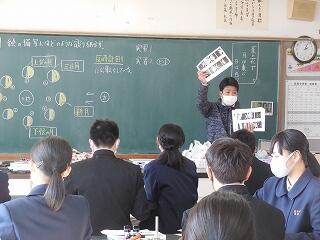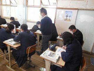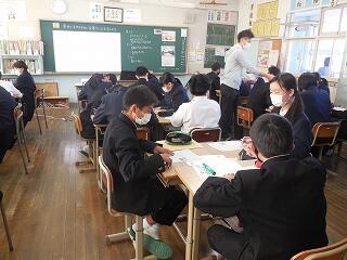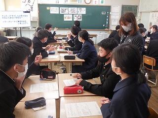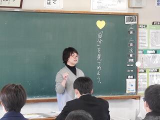 (下、5時間目、3年2組道徳の授業、テーマは自分をみつめる