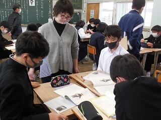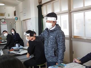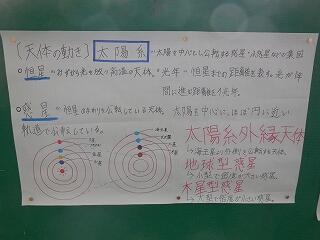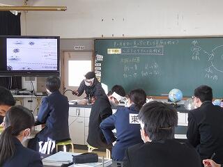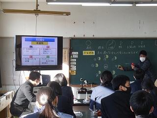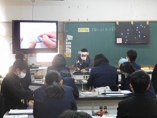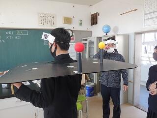 (下、3年3組理科、ヘッドアースモデルを用いての授業)