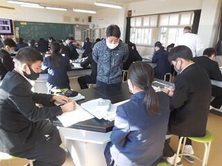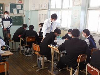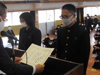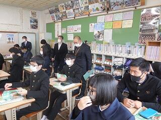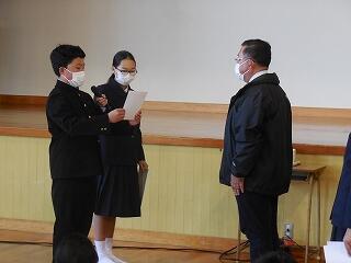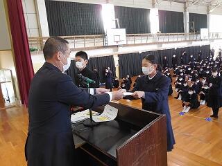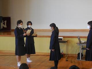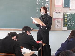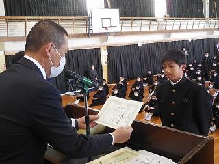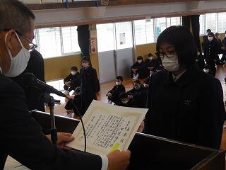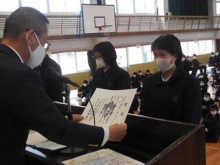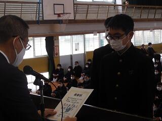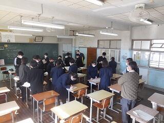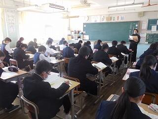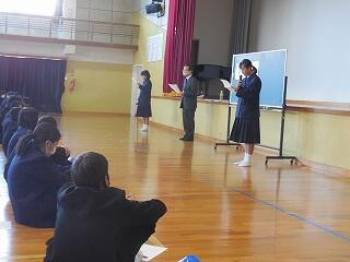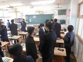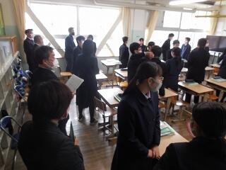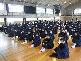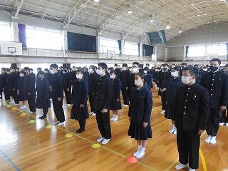 本日は3学期始業の日です。朝の登校時には、全職員で登校指導(見守り)を行いました。清掃の後、リモートによる始業式が行われました。生徒を代表して4名の皆さんが新年の抱負や目標、夢について決意を述べてくれました。生徒代表新年の抱負の中で、当たり前だと思っていた何げない日々の生活が、実は貴重な時間だと言う言葉を心に刻んで3学期を過ごして欲しいと思います。