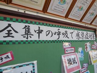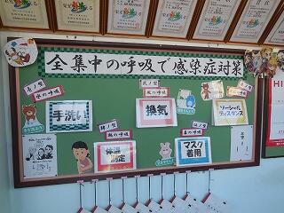 (下、保健室の掲示版、コロナ対策です。是非見に来てください)