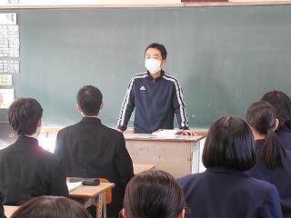 冬休みも残すところ本日を含めて2日となりました。生徒の皆さんは、冬休みの課題はおわったでしょうか。7日は3学期の始業の日となりますが、生活のリズムを整え元気に登校して欲しいと思います。本日は午前中に野球部、女子ソフトボール部、男女バスケットボール部、女子バレーボール部、ソフトテニス部、午後は男女ハンドボール部、吹奏楽部が部活動を行います。