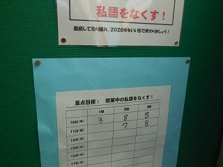 本日は金曜校時の6時間授業です。5時間目に人権週間の一環として、人権講話があります。講師は池澤秀明先生です。6時間目は学活になります。4時間目に1年2組の国語の研究授業が実施されます。本日も感染症体対策に万全を期していきたいと考えます。