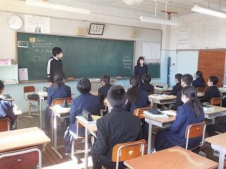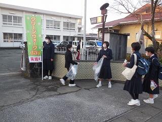 本日は水曜校時で5時間授業です。5時間目に甲斐先生の研究授業(3年2組道徳)が行われます。2年生は昨日に引き続き、みやざき学習状況調査(1時間目社会、2時間目数学)が行われます。また、今日は朝の登校時に通学路のゴミをひろうクリーンウオークデーでした。たくさんの生徒の皆さんが通学路のゴミを拾って登校していました。