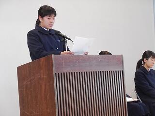 (下、4名の代表の皆さんの2学期の振り返りと3学期の抱負の様子、1年生代表)