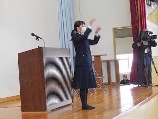 (下、終業式で生徒を代表して2学期の振り返りをして