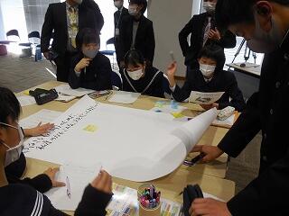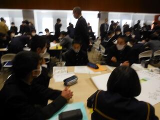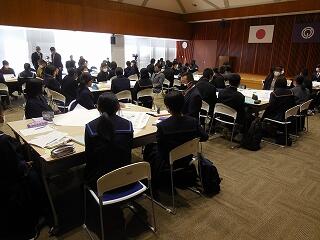 (下、生徒会サミットの様子。「ふるさと延岡のために私たちの力でこんなことやってみたい!をテーマにグループ協議・発表を行いました。)