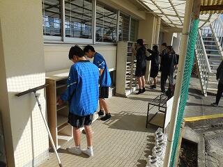 (下、男女バスケットボール部、男女ハンドボール部で体育館の大清掃を行いました)