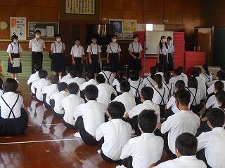 本日は6時間授業です。5・6時間目に北部教育事務所1UPサークル(授業研究サークル)の研究授業が1年1組の理科の時間に実施されます。6時間目は後期の清掃場所変更のための清掃オリエンテーションを行います。