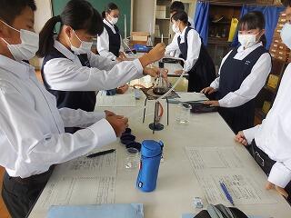 (下、1年生理科の実験の様子)