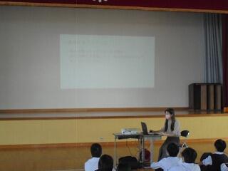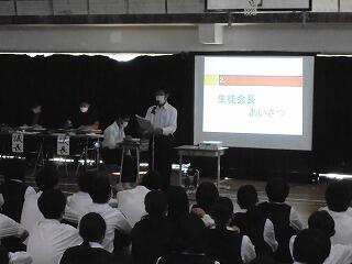 (下、本日の全校集会の様子です。)