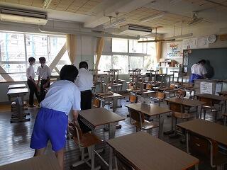 本日は前期中間テストの最終日で、6時間授業です。5・6時間は3年生の高校説明会が実施されます。高校説明会は延岡高校、延岡星雲高校、延岡工業高校、延岡商業高校、門川高校、聖心ウルスラ学園高校、延岡学園高校、鵬翔高校、宮崎日大高校、日章学園高校が校内各会場に分散して、説明会をそれぞれ2回実施していただきます。