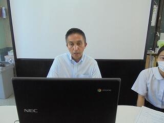 (下、リモートによる始業式の様子です。)