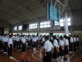 本日は2学期の始業の日となっています。本日は大掃除、始業式、学年集会等が予定されており、本日の生徒の皆さんの下校予定時刻は11時45分頃を予定しています。なお、始業式等の進行状況によっては、下校予定時刻が早まることが予想されます。長期休業開けであるため、本校職員一同、生徒の皆さんの様子を注視しながら教育活動を進めていきたいと考えています。どうぞ、2学期も本校教育活動への御理解と御協力をよろしくお願いします。